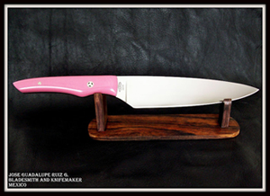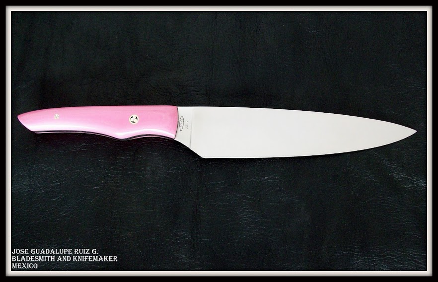 Nuestro Cuchillo para chef Classic slim es un cuchillo con hoja de diseño clasico pero con empuñadura de un diseño innovador basico en tu cocina, es hecho en acero D2 para ofrecerles una dureza y retención de filo que te permitirá cortar y cotar por bastante tiempo sin necesidad de reafilado, con un acabado en el que se cuida hasta el mas minimo detallado, cachas en micarta con separadores para generar una mayor vista en la empuñadura colores a escoger entre la gama de colores que tenemos para ofrecerles y remaches mosaico.