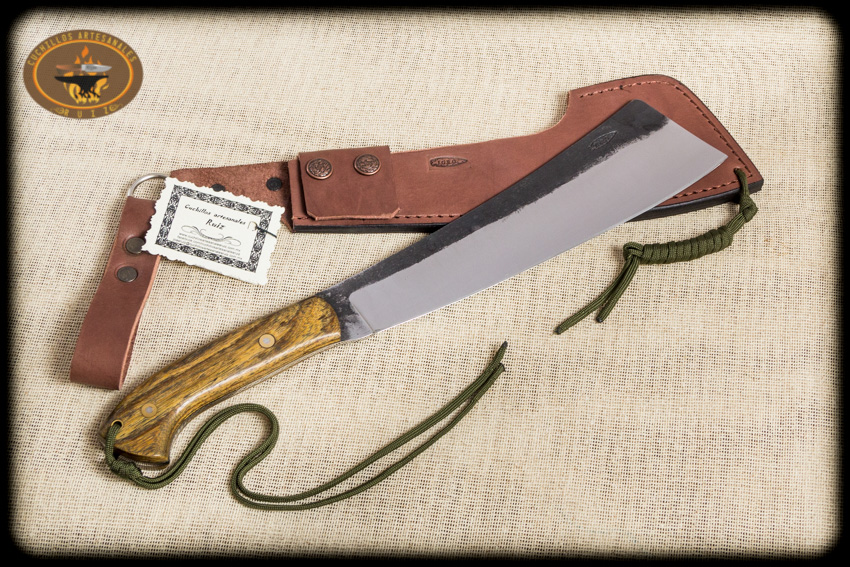 Machete deportivo modelo Tapanga con acabado rustico, hecho en acero al carbon O1 nuevo de fabrica y de origen USA. 40 cms de largo total, temple diferencial que ayuda a maximizar la resistencia al uso, cachas en madera de granadillo con remaches Loveless, funda en vaqueta de primera calidad; la funda y las cachas del machete llevan paracord para una mejor sujeción de la fundan a la pierna y del machete en la mano. Este machete es ideal para cualquier tipo de actividades al aire libre como campismo, bushcrafting, supervivencia, caza, entre otras. Esta hecho 100% de modo artesanal con una calidad de primera en materiales y acabados.