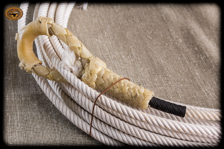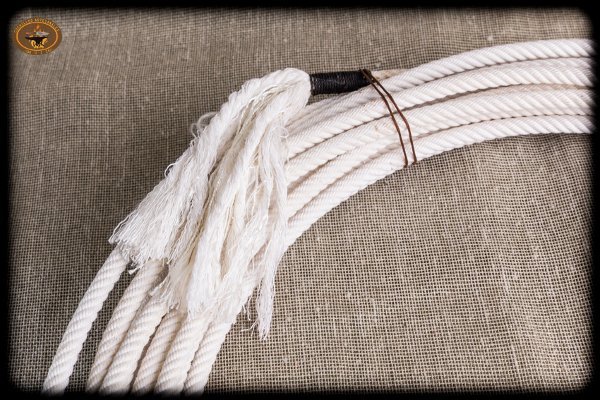 Reata 8.5 mm de algodon con alma de nylon y hondilla de cuero crudo y pajuela en la punta, 18 mts de longitud. Ideal para trabajos del campo y lazar desde la silla ya que a diferencia de las sogas vaqueras de plastico la reata de algodón soporta mucho mejor el desgaste al correr en la cabeza de la silla.