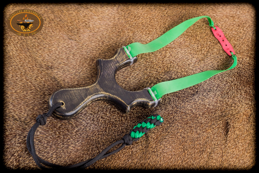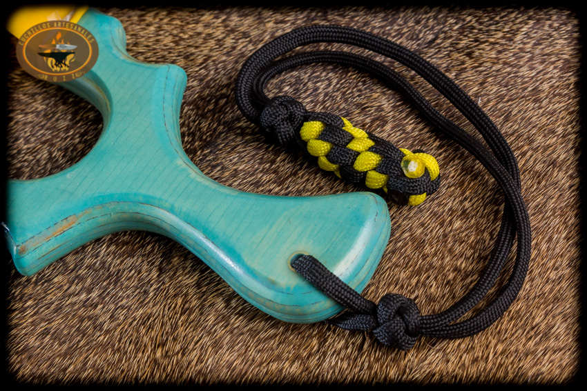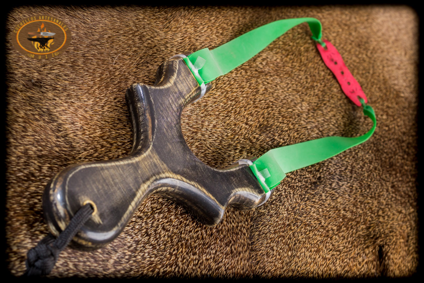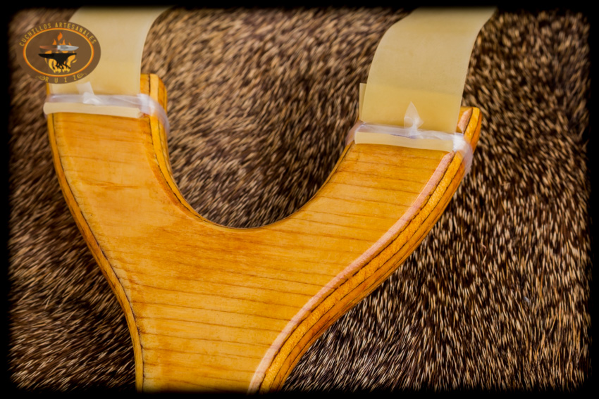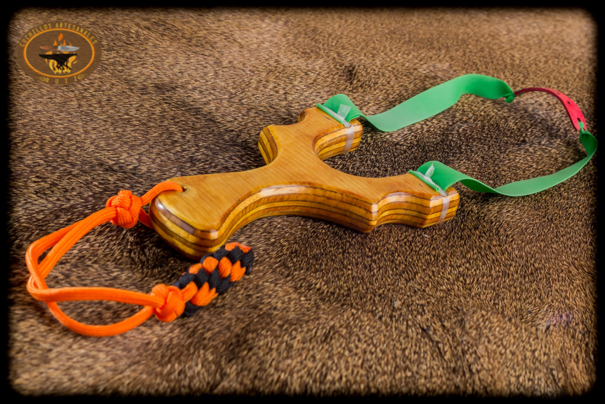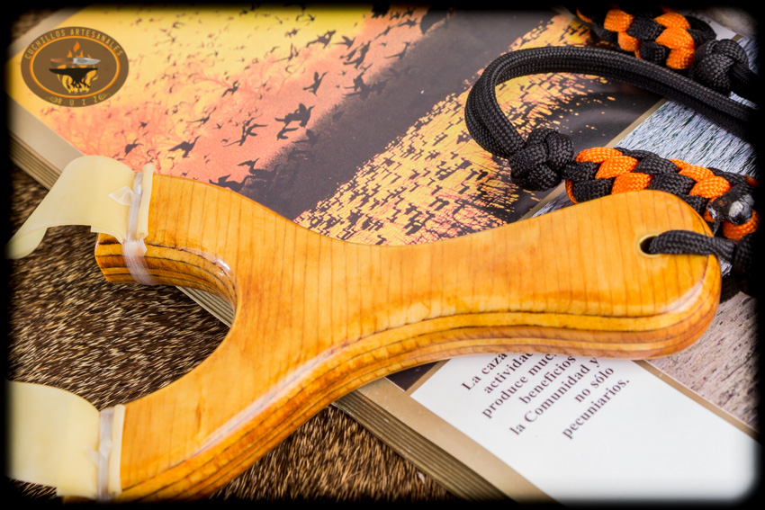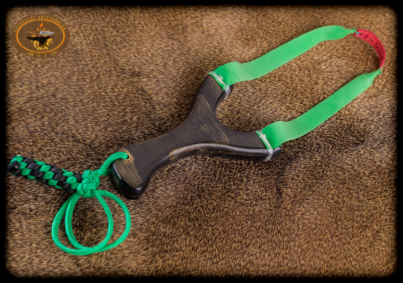 Todas son ambidiestras, llevan un orificio con tubo de laton y  un lanyard hecho en paracord para mayor seguridad a la hora de tirar poder sujetar la resortera a la mano médiate dicha correa y todas van con un  par de ligas una de .45 mm ya montadas o al gusto del cliente y pueden ser de .6 mm, .8 mm o 1mm. Tambien lleva un par de reticulas de papel para aprender a tirar.