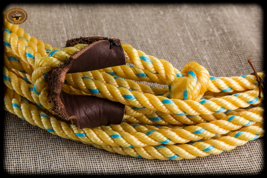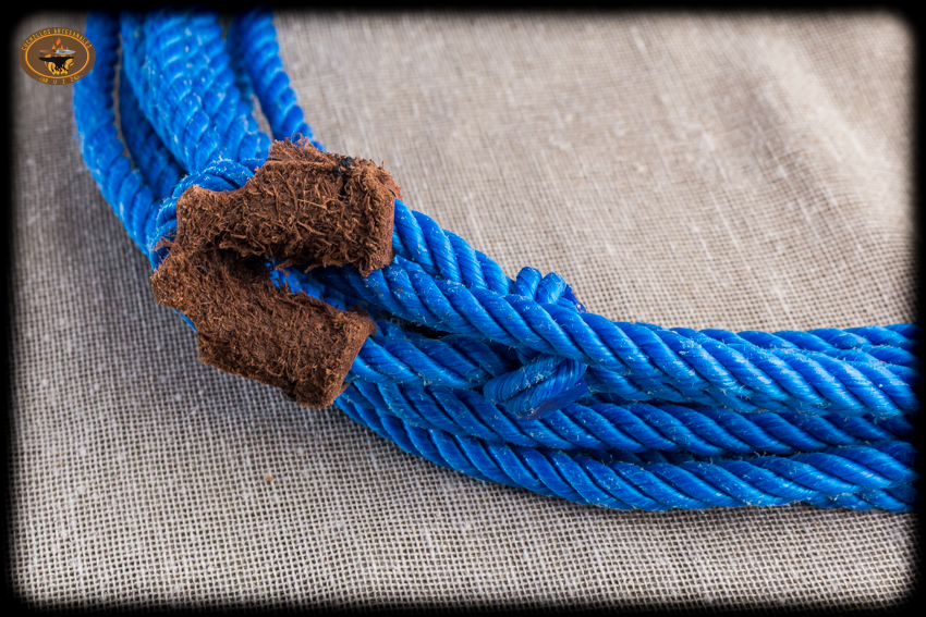 Si se coloca en una soga o reata para lazar la piel debe estar en contacto con la soga.