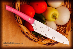 Nuestro Cuchillo para chef Santoku slim es un cuchillo que si o si deberías tener en tu cocina, es hecho en acero D2 para ofrecerles una dureza y retención de filo que te permitirá cortar y cotar por bastante tiempo sin necesidad de reafilado, con un acabado en el que se cuida hasta el mas minimo detallado, cachas en micarta con separadores para generar una mayor vista en la empuñadura colores a escoger entre la gama de colores que tenemos para ofrecerles y remaches mosaico.